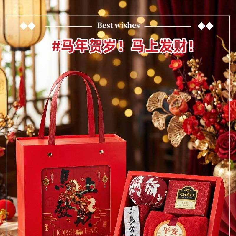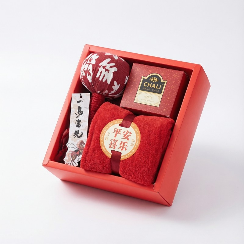 礼盒内含四大实用好物:艾草养生锤舒缓疲劳、 “平安喜乐” 主题毛巾日常必备、茶里经典红茶雅致回甘,搭配 “一马当先” 香片香挂点缀生活,全场景适配需求。精致礼盒印刻国风元素,红金配色凸显马年喜庆氛围,开箱即显仪式感,不管是企业商务活动赠礼,还是节日走亲访友,都能传递满满心意。