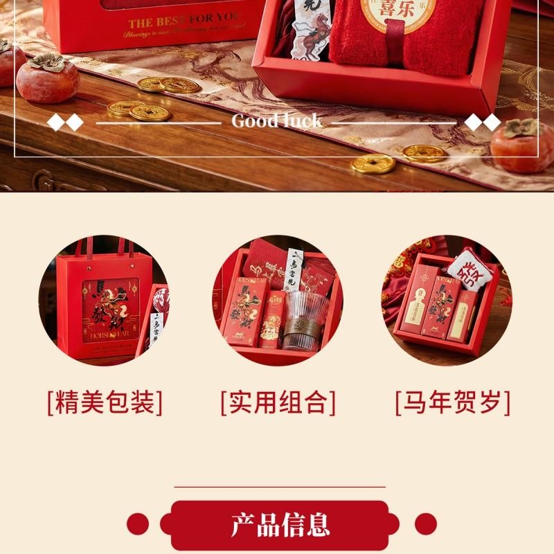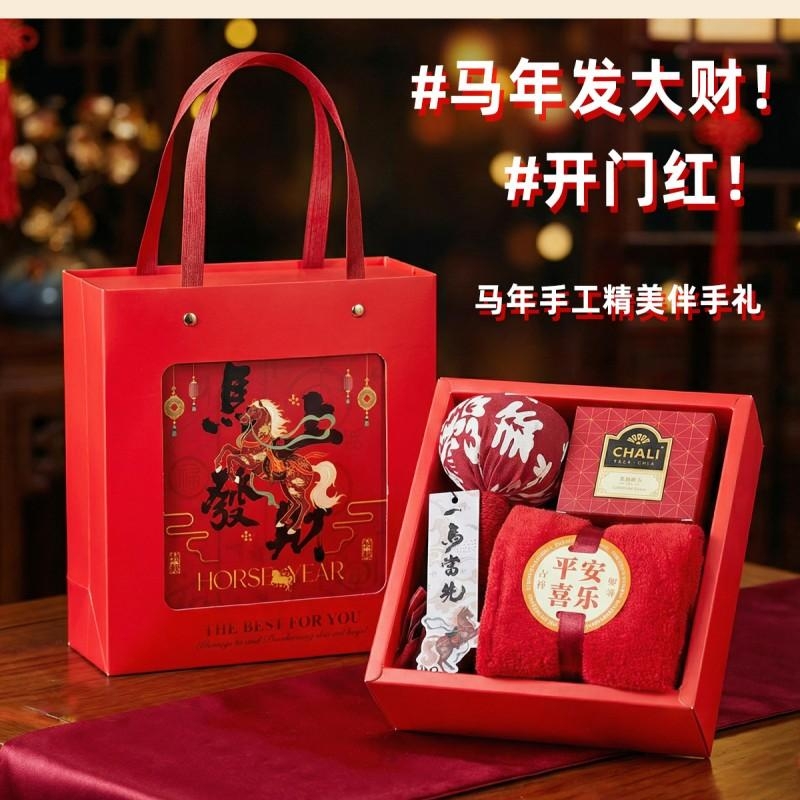 这款马年伴手礼是合肥礼品公司的诚意之作,礼盒内含四大实用好物:艾草养生锤舒缓疲劳、7534cm “平安喜乐” 主题毛巾日常必备、茶里经典红茶(2g2 袋)雅致回甘,搭配 “一马当先” 香片香挂点缀生活,全场景适配需求。22.520.59.3CM 的精致礼盒印刻国风元素,红金配色凸显马年喜庆氛围,开箱即显仪式感,不管是企业商务活动赠礼,还是节日走亲访友,都能传递满满心意。